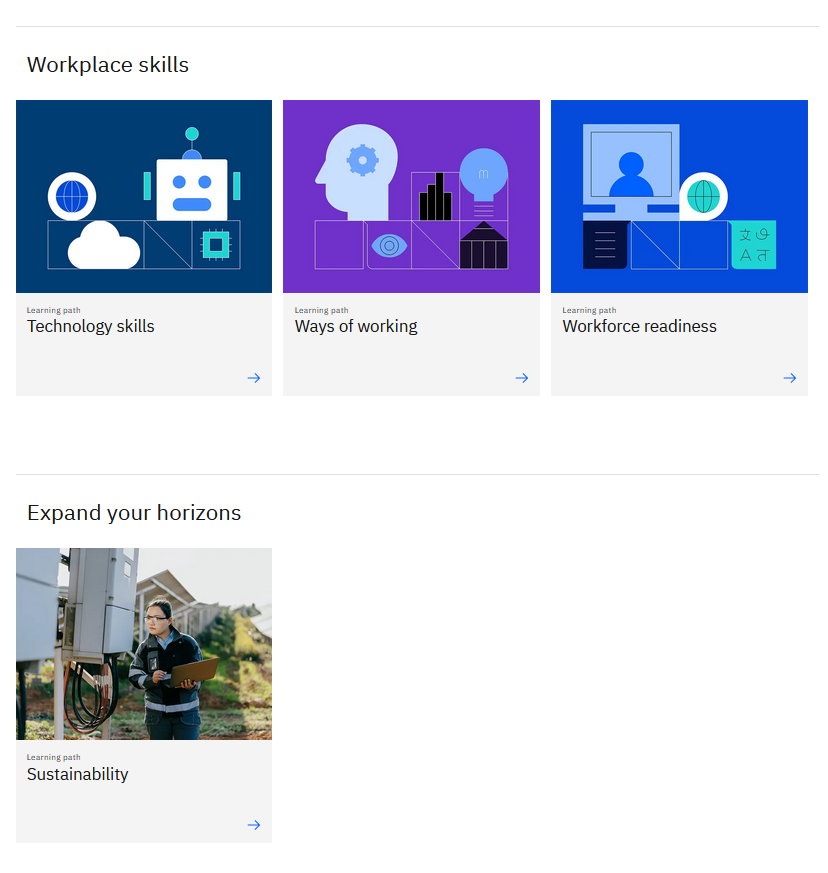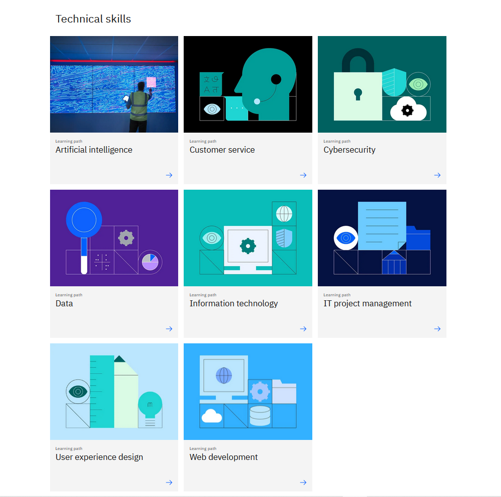 Explore the course catalog to find the job role or learning pathway that makes sense for you. Learn more about the job role, see available courses and digital credentials, and start gaining skills.